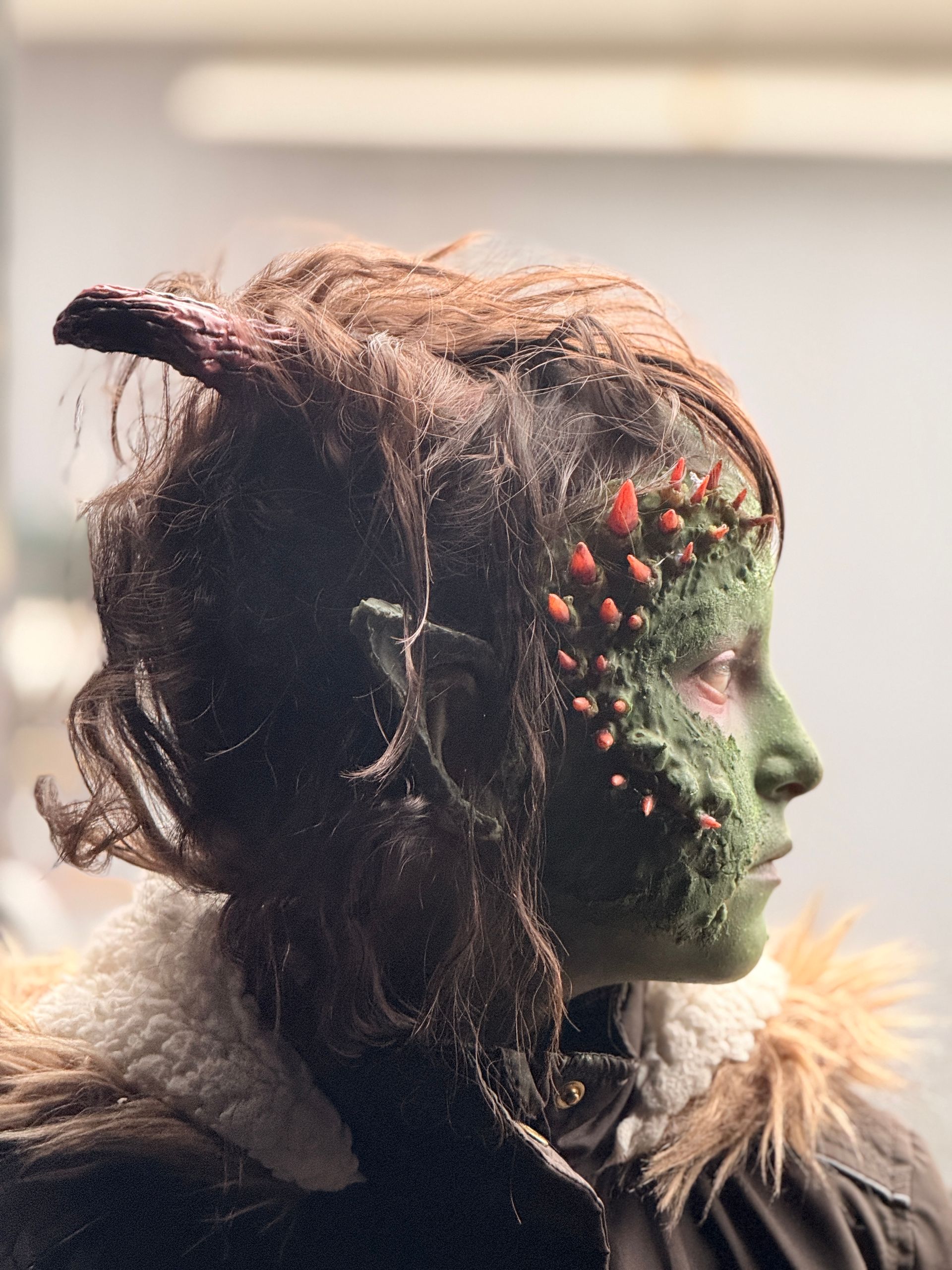 This creation tells a powerful story of contrasting themes. The bloody, torn side of the face represents pain and destruction, while the vibrant flowers growing out of the wounds symbolize resilience and renewal. This blend of horror and beauty highlights how life can emerge from even the darkest circumstances, suggesting that there is always potential for growth and hope, even amidst suffering. This look artistically captures the cycle of life and death, and the transformative power of nature.